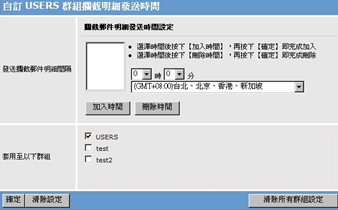 提供全公司各群組或部門的帳號及郵件過濾條件設定,可以快速瀏覽或調整過濾類別,利於實施部門差異化的垃圾信過濾管理政策,還能彈性設定群組人員使用MySPAM個人化服務的功能,可滿足部門到個人對垃圾信的認知差異,落實郵件自主管理。